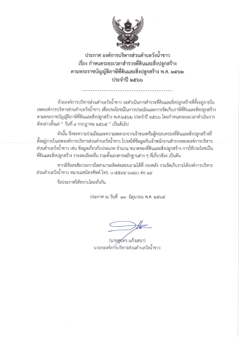 ชื่อเรื่อง : ประกาศ องค์การบริหารส่วนตำบลวังน้ำขาว เรื่อง กำหนดระยะเวลาสำรวจที่ดินและสิ่งปลูกสร้าง ตามพระราชบัญญัติภาษีที่ดินและสิ่งปลูกสร้าง พ.ศ. ๒๕๖๒ ประจำปี ๒๕๖๖