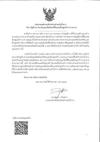 ประกาศองค์การบริหารส่วนตำบลวังน้ำขาว เรื่อง บัญชีราคาประเมินทุนทรัพย์ของที่ดินและสิ่งปลูกสร้าง (ภ.ด.ส.1) ประจำปี 2565