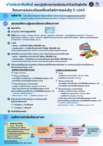 ประชาสัมพันธ์ เรื่อง โครงการลงทะเบียนเพื่อสวัสดิการแห่งรัฐ ปี2565